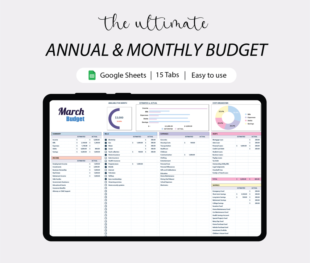 Budget Planner for Google Sheets, Monthly Budget Spreadsheet, Paycheck Budget