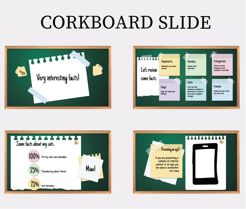 Google Slide interactive slides allow you to recreate the atmosphere of a real board on the surface (cork board).
